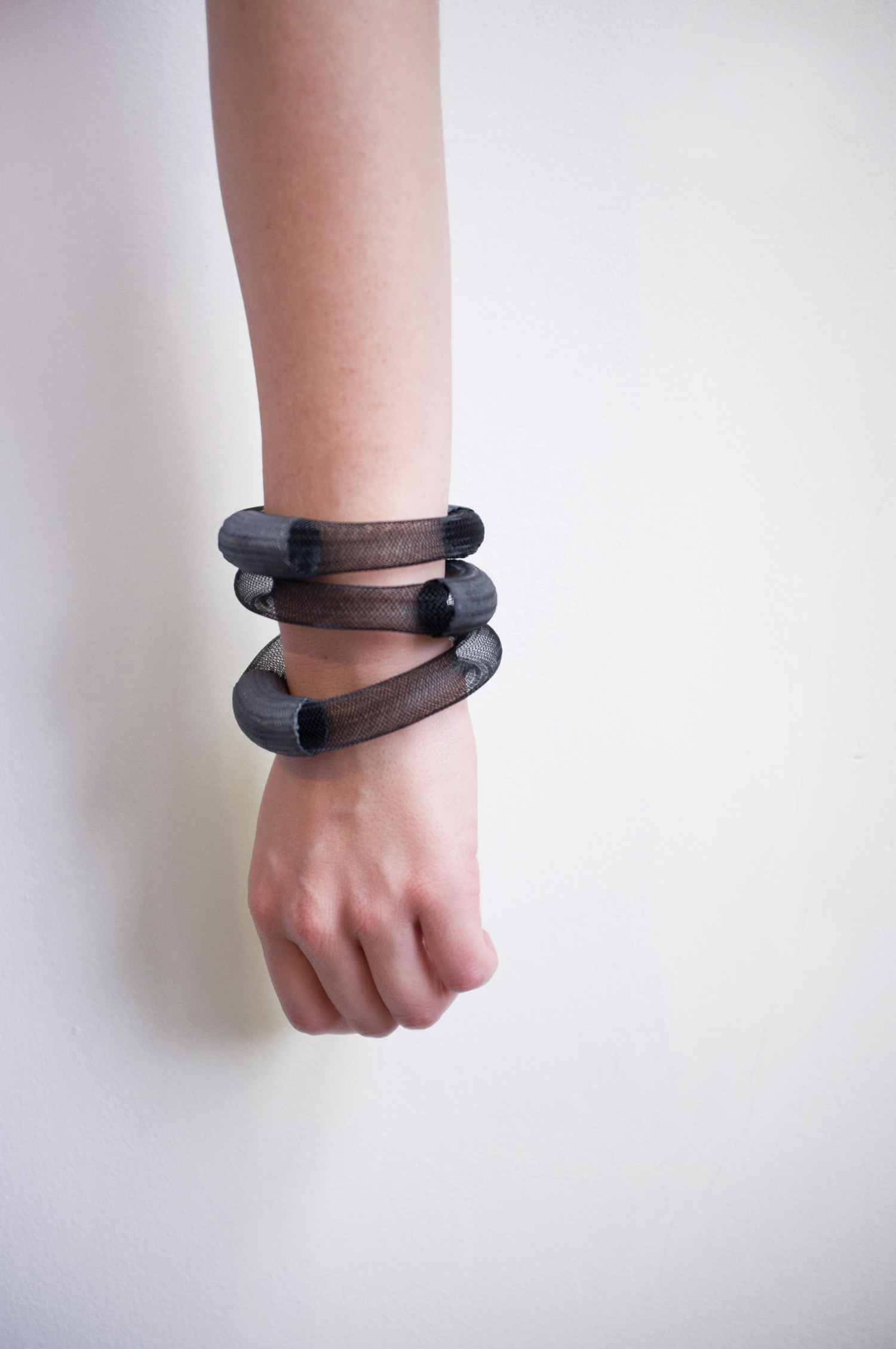 Mesh 'n' Metal is a body of work which explores flexible mesh with formed metal. Both creating a dialogue between the materials.